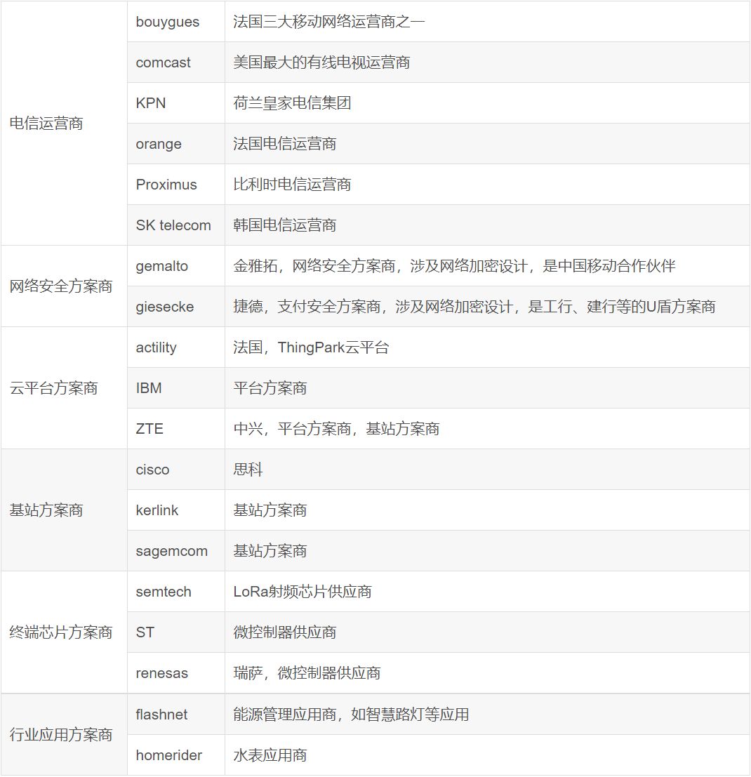 LoRa联盟的主要成员代表