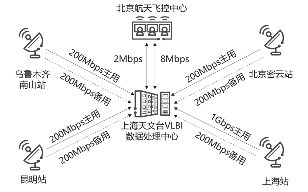 “天问一号”探测器的VLBI数据速率为128Mbps,数据传输专线的带宽要求不小于200Mbps。