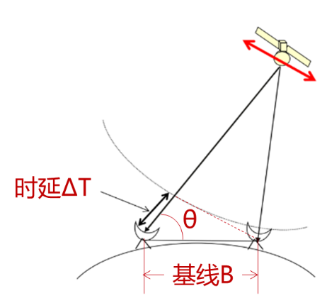 Cosθ=ΔT*c/B,ΔT为不同站台反射型号时延差值,c为光速,B为站台距离基线。