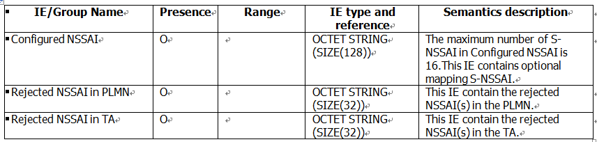 该IE用于初始AMF向目的AMF透明传递NSSF提供的信息,具体信息如下: