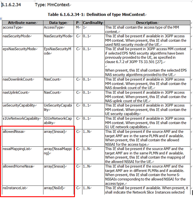 为什么是比较Allowed NSSAI呢?因为从UE Context中包含的mmContex的定义来看,其中只包含Allowed NSSAI及其映射。详见下图: