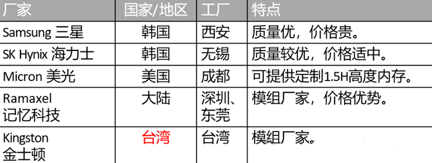 4、8GB内存为主流配置;SDRAM内存条有双面和单面两种设计,每一面采用8颗或9颗(多出的一颗为ECC)内存颗粒(内存芯片)。