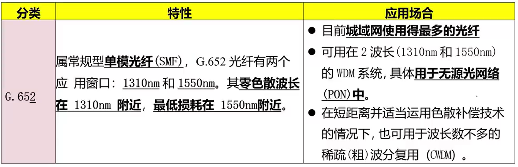 G.652 的零色散波长在 1310nm 附近,最低损耗在 1550nm 附近;