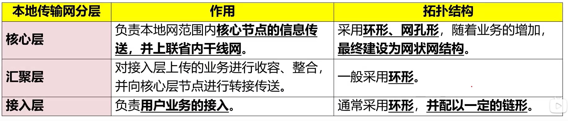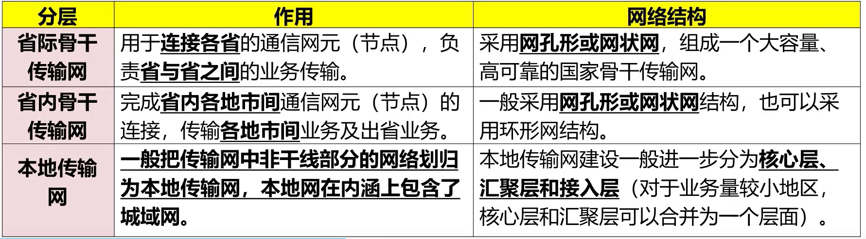 本地传输网的分层结构:进一步分为核心层、汇聚层、接入层