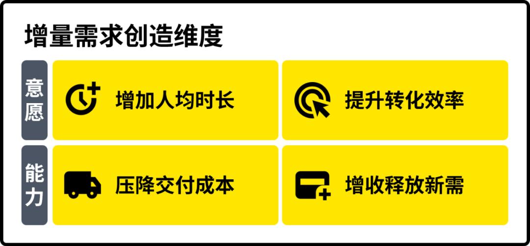 ①拓展更多用户;②增加人均时长;③提升转化效率。