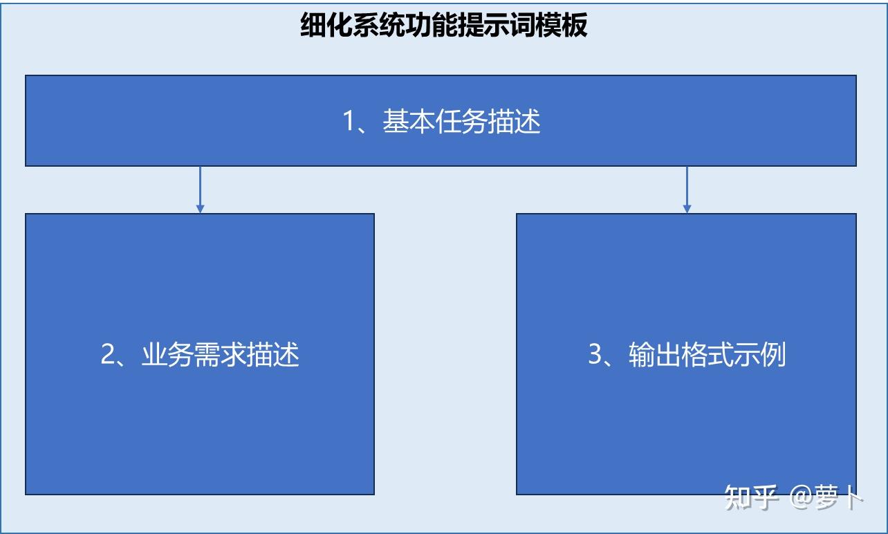 1、基本任务描述,这是本提示的逻辑主干,核心思路是要求大模型“按照需求分解功能,输出格式参考示例内容“。