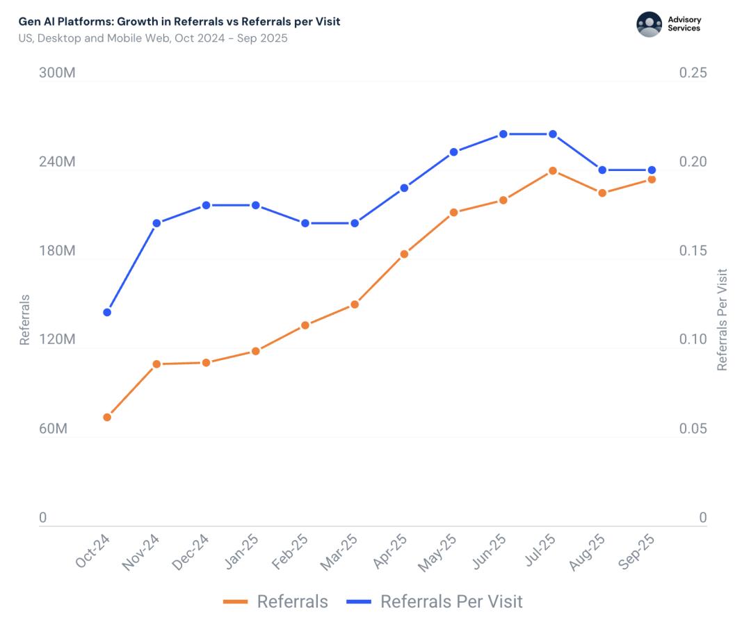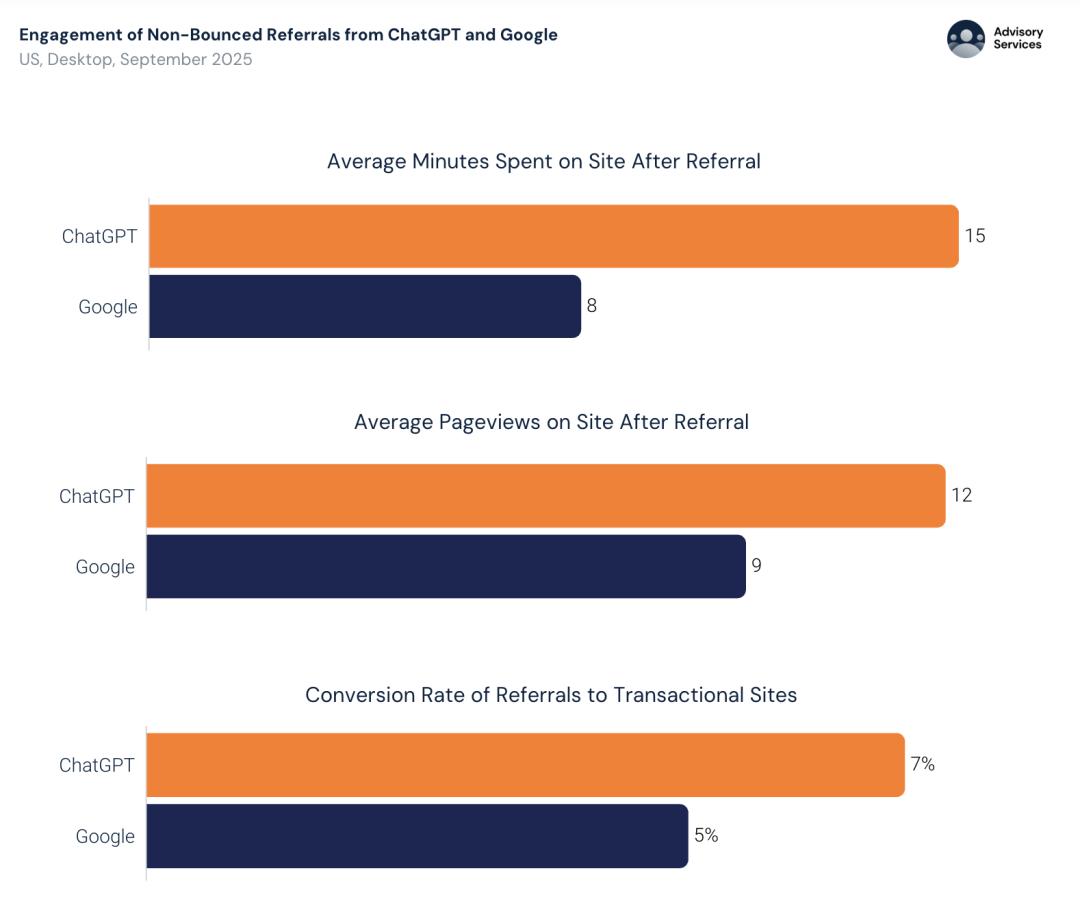:互联网的商业逻辑正在重写。来自AI的推荐流量更「精准」,转化率比谷歌高