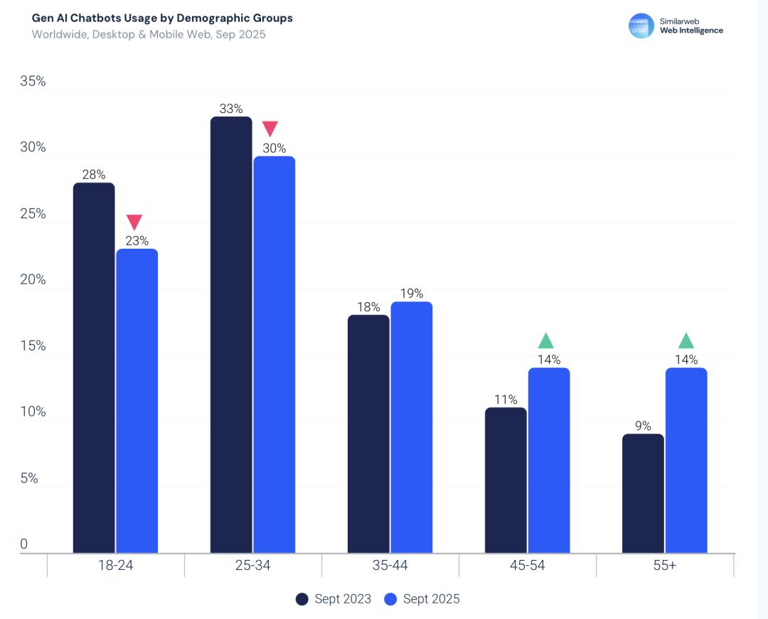 暴涨3倍,18-34岁占比反降15%:这届中年人开始占领AI
