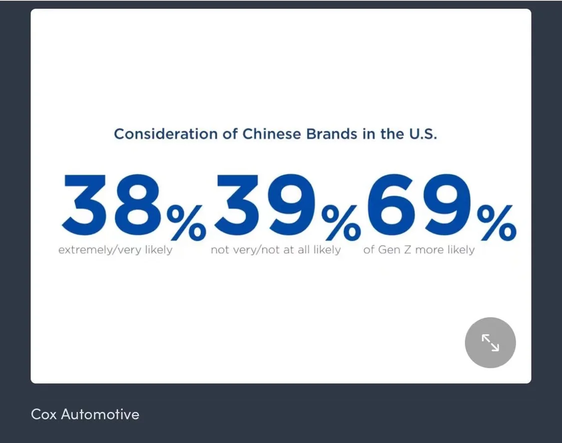美国一研究报告指出:美国69%的Z世代购车者会考虑中国汽车品牌?