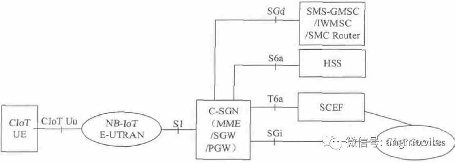 NB-IoT无线通过S1接口连接核心网,针对NB-IoT特有的低速小报文,3GPP定义了C-SGN(CIoT业务网关节点)融合简化EPC核心网。包括MME/SGW/PGW简化功能,另外针对NB-IoT业务特性做了功能优化。主要包括:控制面数据传输、安全流程、不需要联合附着、优化寻呼功能、支持SCEF接口、支持无PDN的附着连接等。